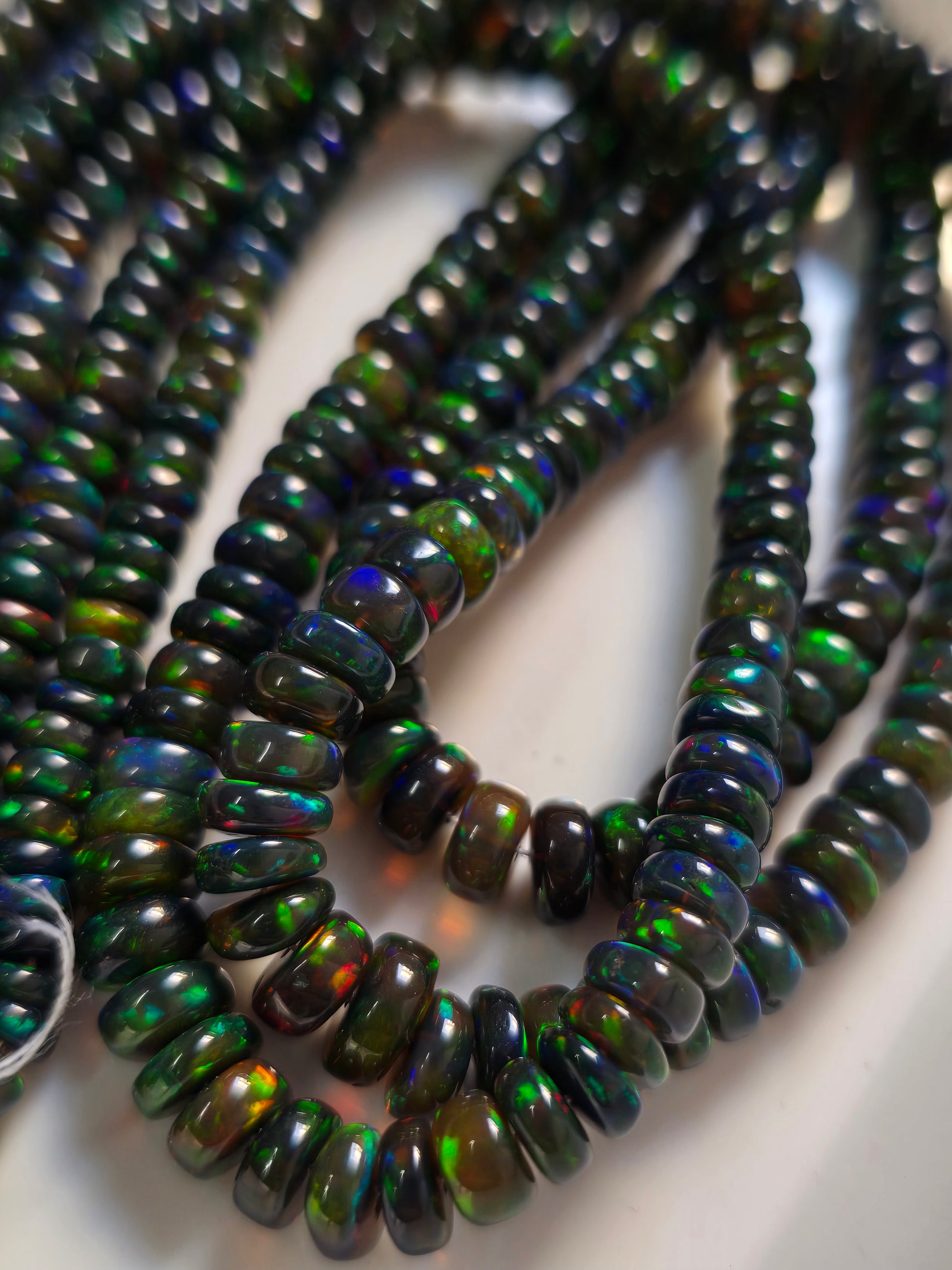 AAA TOP QUALITY BLACK ETHIOPIAN OPAL SMOOTH RONDELLE, 16 INCHES, 5 TO 7 MM APX, ETHIOPIAN OPAL BEADS, BEADS, GEMSTONE BEADS, NATURAL STONES